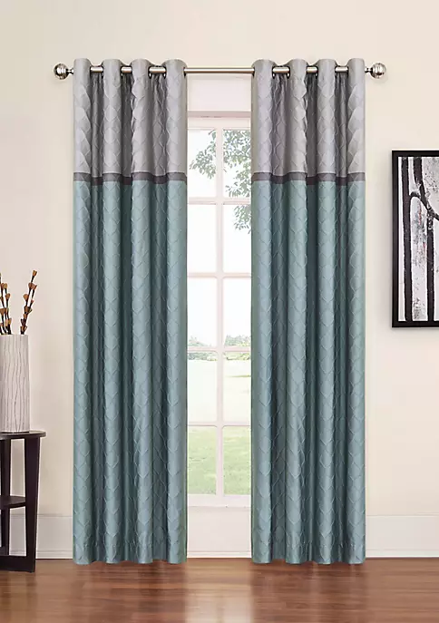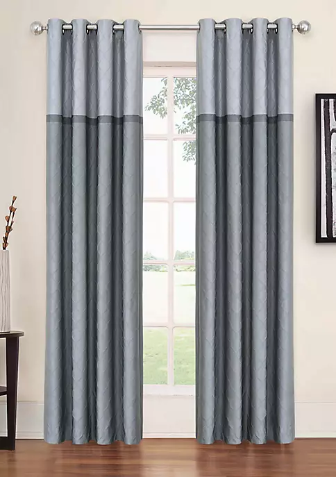 Find the perfect combination of fashion and function with the Eclipse Arno Blackout Curtains. Eclipse offers a complete line of functional curtains that provide privacy, manage light, reduce noise, and help with energy savings, without sacrificing the latest looks in window fashion. These beautiful panels offer blackout benefits and feature a modern, decorator look. High fashion ogee trellis pattern comes to life in bold bands of color. Premium thermal lining gives this panel a rich hand and provides luxurious drapability.