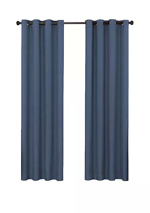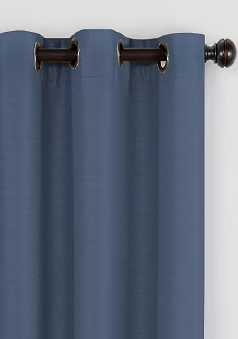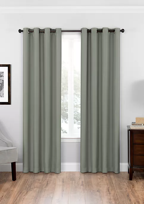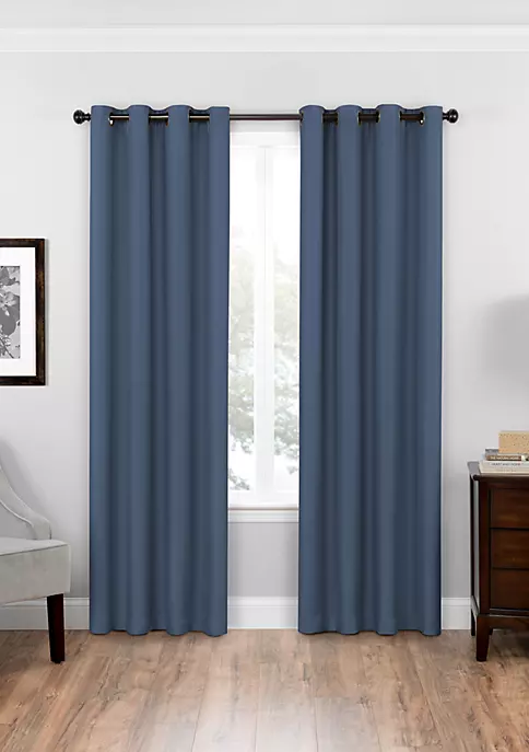 Offering the perfect combination of fashion and function, this Bryson Blackout curtain by Eclipse™ offers a complete line of functional curtains that provide privacy, manage light, reduce noise, and help with energy savings without sacrificing the latest looks in window fashion. These beautiful panels offer blackout benefits and feature a textured, tonal solid fabric. Blackout yarns are intricately woven into the panel giving it a rich hand and luxurious drapability. Each panel measures 52 inches wide in your choice of 63, 84, 95, or 108 inches long. 1.65 inch oil-rubbed bronze grommets are recommended with a 1 inch rod for maximum movement.