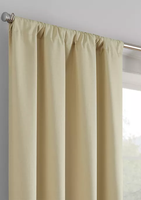 Experience the darkness, silence, and beauty of Eclipse™ curtains. Eclipse blackout panels have been laboratory-tested to block out over 99% of intrusive light, unwanted noise and can help you save on home heating and cooling costs. Eclipse curtains offer a unique blend of fashion and function for any home décor. Transform your media room into the ultimate home theater experience, or create ambiance in your dining area. National Sleep Foundation studies show that reduced light and noise are optimal for a better night’s sleep. Eclipse Curtains are perfect for the bedroom, kid’s room or nursery, providing the ideal sleep environment for the whole family. The magic is in the Thermaback™ construction. The innovative foam-backing is applied to the fabric and allows you to enjoy all of the light-blocking, noise-reducing, and energy-saving benefits while providing the same fashionable style and elegance of naturally flowing curtains. Hang two or more curtain panels on a standard or decorative rod for optimal coverage and desired effect. Sold as a single rod-pocket panel measuring 42-inch wide in your choice of 54-inch, 63-inch, 84-inch, and 95-inch lengths. Rod sold separately.