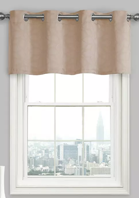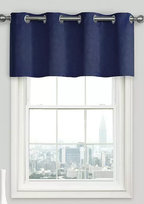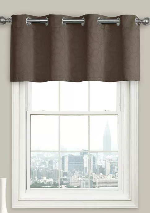 Find the perfect combination of fashion and function with Eclipse™ Kingston Blackout valance. Eclipse™ offers a complete line of functional curtains that provide privacy, manage light, reduce noise, and help with energy savings, without sacrificing the latest looks in window fashion. These beautiful panels offer blackout benefits and features an embossed circular geometric motif. Each valance measures 52 inches wide and 18 inches long. Curtain rod sold separately.