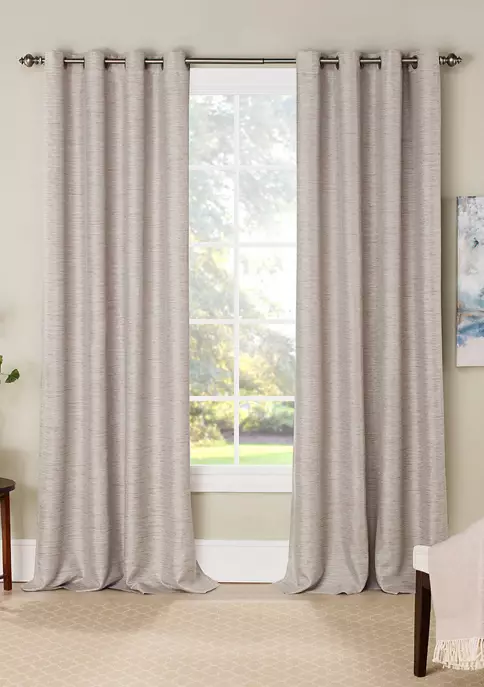 Find the perfect combination of fashion and function with the Eclipse™ Newport Blackout Curtains. Eclipse offers a complete line of functional curtains that provide privacy, manage light, reduce noise, and help with energy savings, without sacrificing the latest looks in window fashion. These beautiful panels offer blackout benefits and feature a jacquard textured solid. Premium thermal lining gives this panel a rich hand and provides luxurious drapability. Each panel measures 52 inches wide in your choice of 63, 84, 95, or 108 inches long. 1.65 inch brushed nickel grommets are recommended with a 1-inch rod for maximum movement.