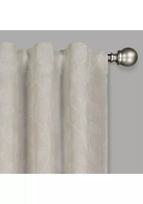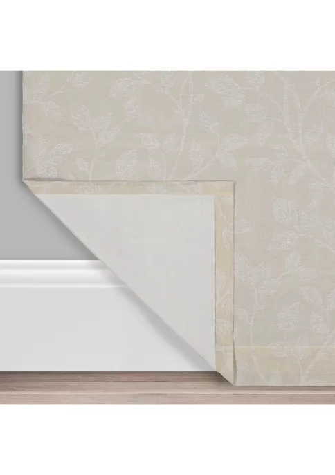 Find the perfect combination of fashion and function with Eclipse™ Nora botanical print window curtain panel. These beautiful panels offer Absolute Zero 100% blackout benefits with a premium thermal lining that gives this panel a rich hand and provides luxurious drapability. This transitional 100% blackout panel features a botanical print pattern on a solid background, which makes this panel versatile and perfect for the bedroom, living room, or any room in your home and allows you to enjoy all of the light-blocking, noise-reducing, and energy-saving benefits. Each panel measures 50 inches wide in your choice of 63, 84, 95, or 108 inches long. 3-inch rod pocket accommodates up to a 2-inch rod. Curtain rod sold separately. The reverse of the panel is light gray.