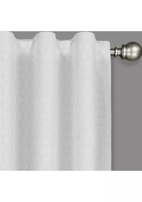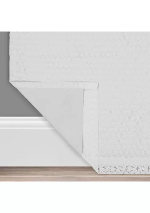 Find the perfect combination of fashion and function with Eclipse™ Nora Crochet window curtain panel. These beautiful panels offer Absolute Zero 100% blackout benefits with a premium thermal lining that gives this panel a rich hand and provides luxurious drapability. This transitional 100% blackout panel features a round crochet design on top of the thermal lining, which makes it versatile and perfect for the bedroom, living room, or any room in your home and allows you to enjoy all of the light-blocking, noise-reducing, and energy-saving benefits. Each panel measures 50 inches wide in your choice of 63, 84, 95, or 108 inches long. 3-inch rod pocket accommodates up to a 2-inch rod. Curtain rod sold separately. The reverse of the panel is light gray.