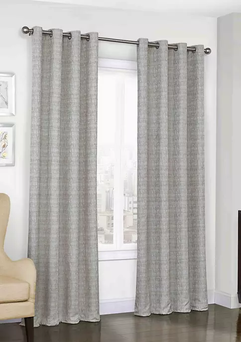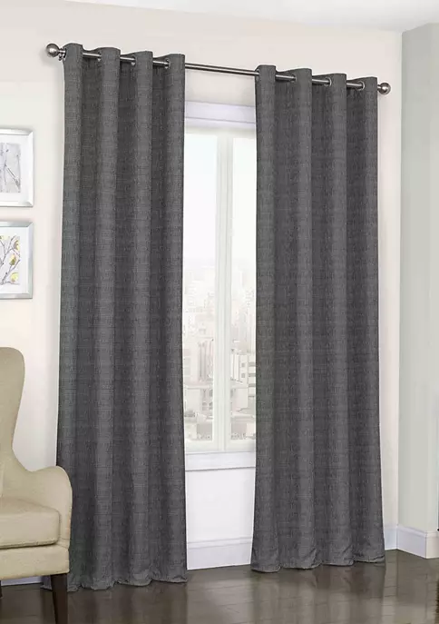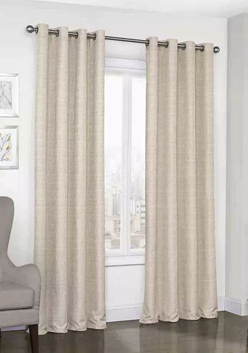 Find the perfect combination of fashion and function with the Eclipse™ Trevi Blackout Curtains. Eclipse™ offers a complete line of functional curtains that provide privacy, manage light, reduce noise, and help with energy savings, without sacrificing the latest looks in window fashion. These beautiful panels offer blackout benefits and feature an updated classic aesthetic with a chenille woven texture. Premium thermal lining gives this panel a rich hand and provides luxurious drapability. Each panel measures 52 inches wide in your choice of 63-inch, 84-inch, 95-inch, or 108-inch long. 1.65-inch brushed nickel grommets are recommended with a 1-inch rod for maximum movement.