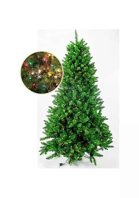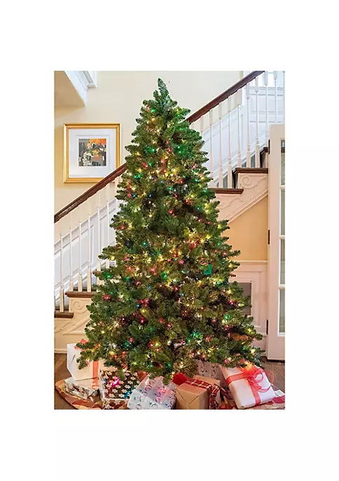 This beautifully green artificial Christmas tree comes pre-lit with multicolored lights to allow you to decorate conveniently while keeping the charm of a live tree!