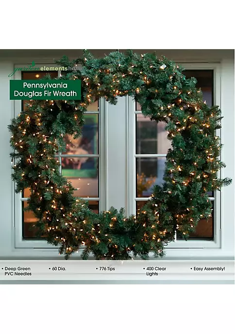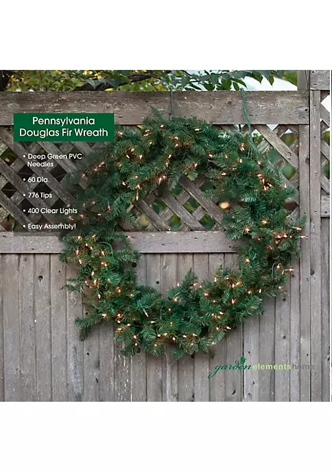 The Pre-lit Pennsylvania Douglas Fir is a rich green wreath that features UL listed incandescent clear lights for a classy, festive, look. With its realistic PVC needle construction, no one will be able to tell the difference between your wreath or a live douglas fir wreath. It’s a guaranteed match for your door and the rest of your outdoor decor this Christmas season!