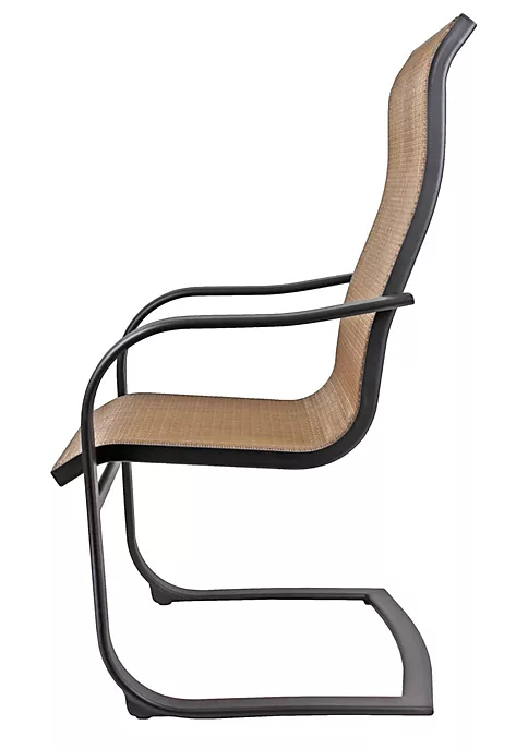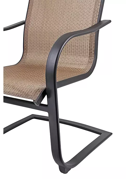 transported with ease. The chair is covered in a durable espresso sling fabric