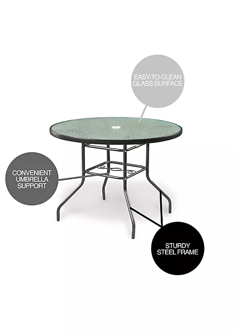 Many outdoor meals are to be had on this furniture piece! This product is durably crafted from tempered glass and a captured