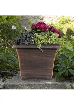 Garden Elements Outdoor Large Square Plastic Planter, Bronze, 14″