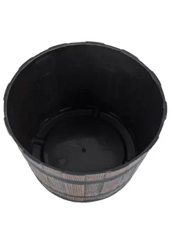 Garden Elements Mini Whiskey Barrel Plastic Planter, Dark Oak, 10