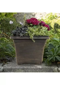Garden Elements Outdoor Large Square Plastic Planter, Gold, 14″