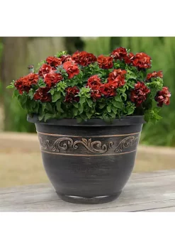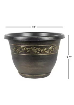 Garden Elements Outdoor Dragon Banded Plastic Planter, Bronze, 13″